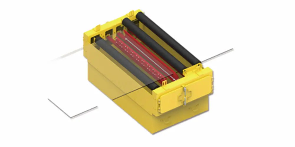 系统由“自动导正上调偏托辊组”和“自动导正下调偏托辊组”组成,自动导正托辊组有别于传统皮带机调偏托辊组的被动纠偏方式。其利用调偏托辊两头特别的锥体部分,在皮带发生偏离时,导正托辊会自动偏转角度,对皮带...